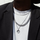 Los collares para hombre pueden estar hechos de diferentes materiales. El acero inoxidable es uno de los más utilizados por su resistencia y acabado pulido, mientras que el cuero ofrece un estilo más casual y rústico. También existen opciones en plata o oro, que aportan un toque de elegancia, ideales para quienes buscan algo más sofisticado.+